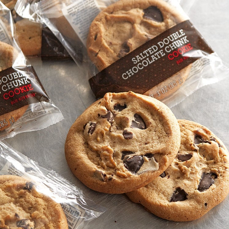 Double all the way...Made with both butter and brown butter, two kinds of semi-sweet chocolate chunks (50% and 55% cocoa) and both salt and sea salt!