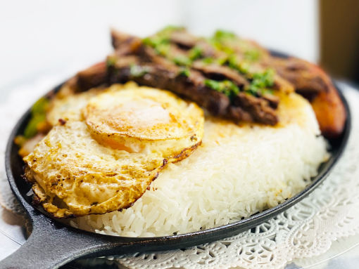Spicy ramen bowl made with roasted chicken, spicy broth, ramen noodles, grilled jalapenos, scallions & a fried egg.